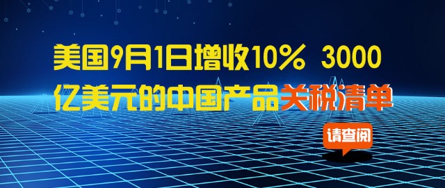 关键字:新增关税、3000亿美元货物清单、10%、9月1日起实施